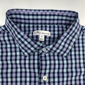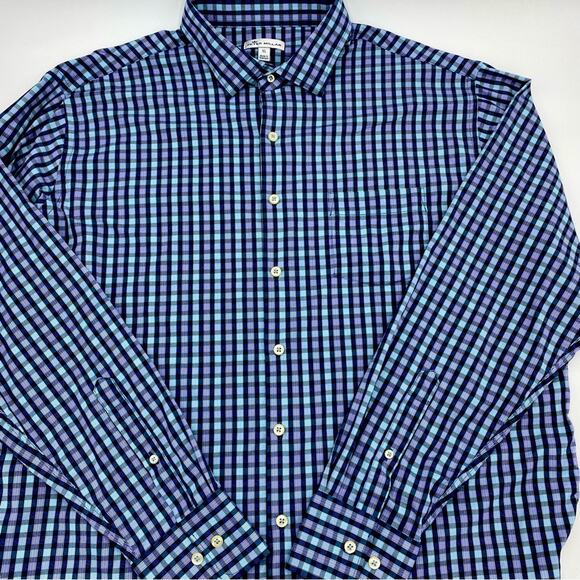 Peter Millar Men’s Shirt Plaid Luxury Lightweight Nylon Blend Long Sleeve XL