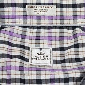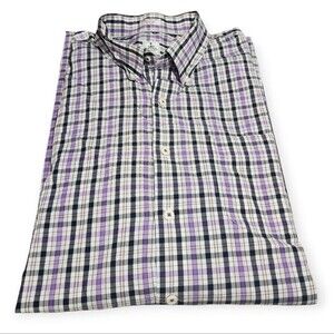 Peter Millar Men's Short Sleeve Button Down Shirt Purple Plaid XXL