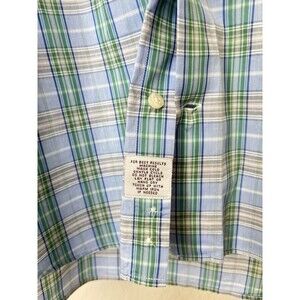 Peter Millar Men's Size Medium Blue Green Plaid Long Sleeve Button-Down Shirt. In good, pre-owned condition.