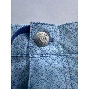 The Peter Millar Men's Size XXL Sicilian Geo Print Swim Trunks are stylish and functional swim trunks designed for men. Made from a blend of polyester and spandex, these swim trunks feature a built-in brief, elastic waist, quick dry material, back pocket, and drawstring closure for a customized fit. The vibrant blue, green, white, turqoise, and teal color scheme adds a pop of color to your swimwear collection, while the trunks style offers both comfort and practicality for all your swimming adventures.