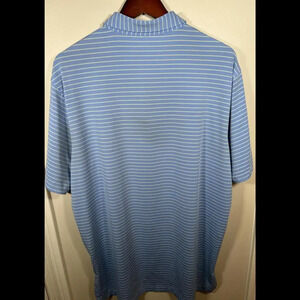 Stylish Peter Millar Polo Shirt, classic stripes in light blue and soft green.
