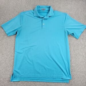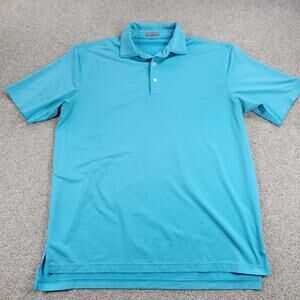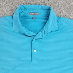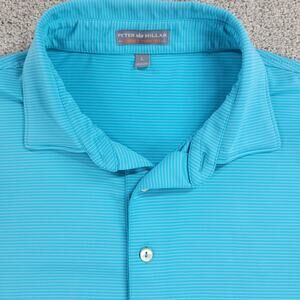 Peter Millar Mens Summer Comfort Golf Polo Shirt Large Teal Blue Striped Button