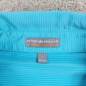 Peter Millar Mens Summer Comfort Golf Polo Large Blue Striped Button Shirt