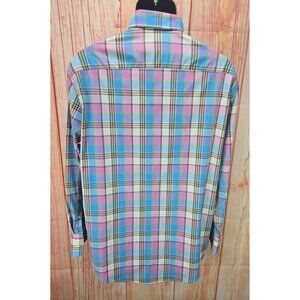 Peter Millar Mens Summer Comfort Plaid Shirt Large Nylon/Spandex