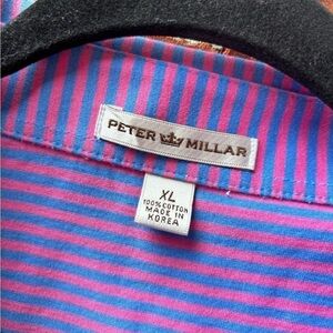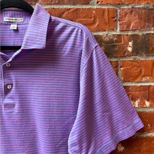 Peter Millar Mens XL Blue Pink Stripe Short Sleeve Polo Shirt