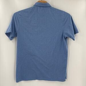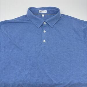 This is a pre owned Peter Millar Mens XL Blue Striped Cotton Silk Blend Short Sleeve Polo Shirt. This item is in good condition with light use.