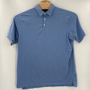 Peter Millar Mens XL Blue Striped Cotton Silk Blend Short Sleeve Polo Shirt