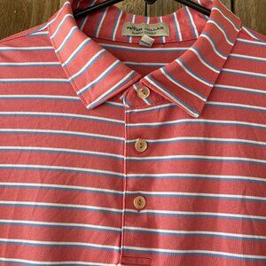 Peter Millar Men's XL Striped Shirt Blue White and Peach Embroidered Golf Logo