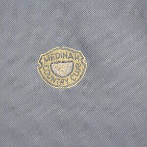 Elevate your golf game with Peter Millar's X-Large Blue Golf Polo Short Sleeve Shirt. Featuring a solid design and Medinah Country Club logo, this polo is made from 100% polyester, ensuring comfort and durability.