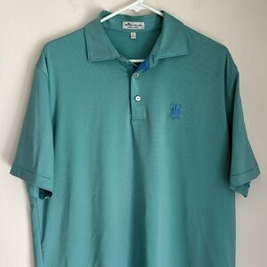 Peter Millar Men’s stripped summer comfort golf polo green blue size large READ!
