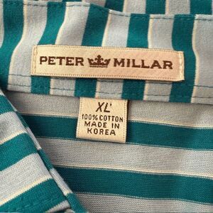 Peter Millar Men's Striped Short Sleeve Polo Shirt Green Gray Size XL