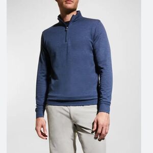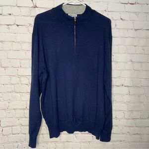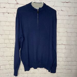 Peter Millar Men's Sweater L Navy Quarter Zip Pullover Cotton Silk cashmere