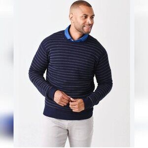 Peter Millar Merino Crewneck Sweater Sz L Navy Breton Striped Nautical Preppy