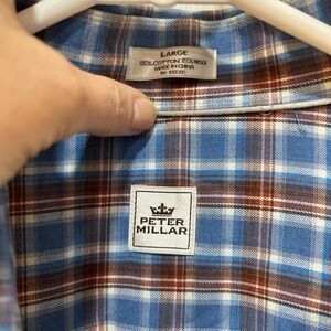 Peter Millar Micro Plaid Button Down Cotton Wool Blend Long Sleeve Size Large