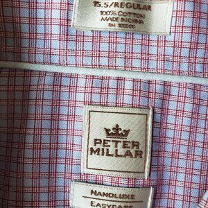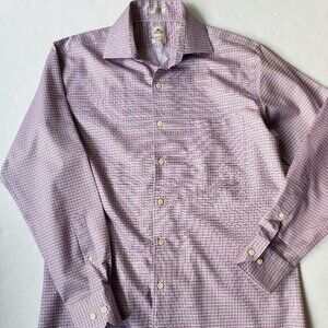 Peter Millar Nanoluxe Cotton Plaid Long Sleeve Button Down Dress Shirt Size 15.5.