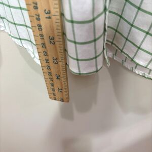 Features: Peter Millar Nanoluxe Green Button Down Shirt. Windowpane Plaid. Easy Care.