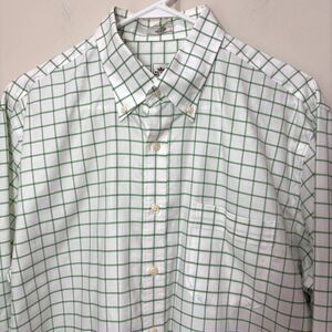 Peter Millar Nanoluxe Green Button Down Shirt Men L Windowpane Preppy Easy Care