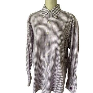Peter Millar Nanoluxe Purple Check Button Down Shirt Size Large