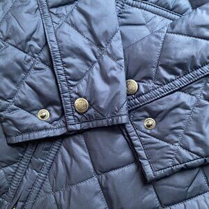 Quilted design. Full zip closure. Hooded style. Lightweight and durable.