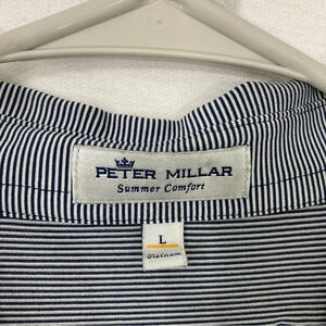 Peter Millar Navy Striped Summer Comfort Short Sleeve Polo Shirt Large