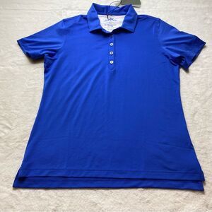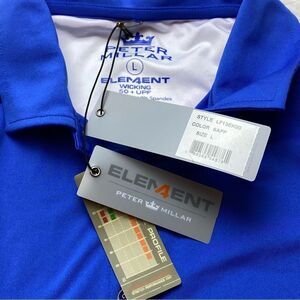 Peter Millar New With Tags Elements Blue Golf Polo Size Large. Excellent new condition. 5 button front. Short sleeves. "B" on sleeve. Measures chest 41", length 25./26.5", sleeve 8".