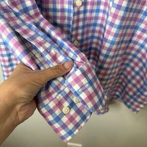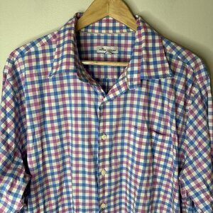 Peter Millar Performance Button Up Shirt Mens XL Blue Pink Gingham Plaid