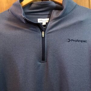 Peter Millar Perth Melange quarter zip performance pullover. Classic style. 4 way stretch. Moisture wicking. Mock collar. Banded cuffs and hem. Does have an embroidered logo ProAmpac. Like new condition