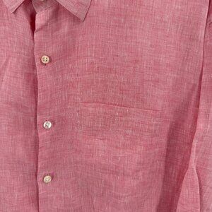 Peter Millar Pink 100% Linen Button Down Short Sleeve Shirt Mens Size XL