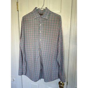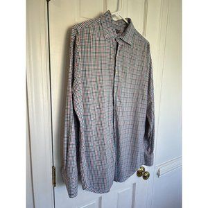 Peter Millar Pink Blue Plaid Summer Comfort Button Down Shirt Size Medium