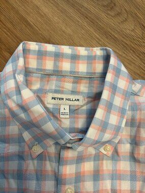 Peter Millar Pink Plaid Mens L Oxford Long Sleeve Button Up Casual Shirt