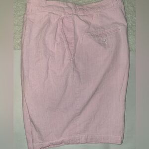 Stylish and comfortable pink striped shorts perfect for casual outings. Enhance your wardrobe with these versatile shorts. Pre-owned and in good condition with a small faint spot that is pictured. Great pink and white seersucker stripes!