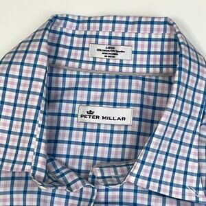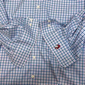 - Peter Millar Plaid Check Blue Pink White Shirt With Pirate Embroidery Large