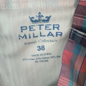 Peter Millar Plaid Golf Shorts Mens Size 38 Linen Cotton Silk Preppy Pastel