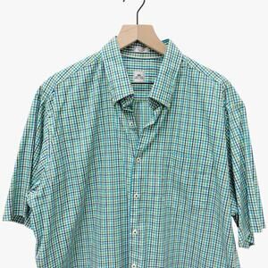 Peter Millar Plaid Green Blue Button Down Short Sleeve Men’s Size XL