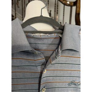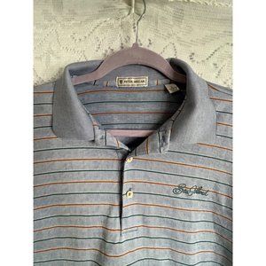 Peter Millar Polo Golf Shirt Mens Gray Stripe Short Sleeve Sz L