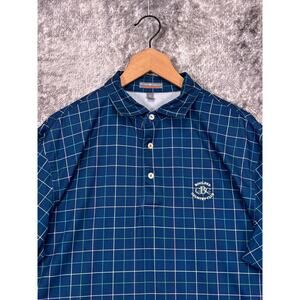 Peter Millar Polo Shirt Medium Mens Summer Comfort Blue Windowpane Golf