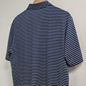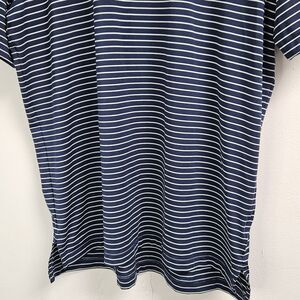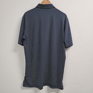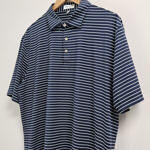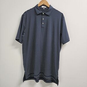 Peter Millar Polo Shirt Men Large Navy Blue Green Striped Golf Summer Comfort