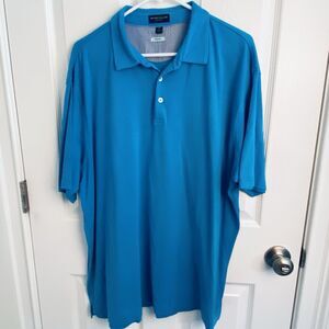 Peter Millar Polo Shirt Mens 2XL XXL Solid AQUA Blue Golf Perfect Pique Cotton
