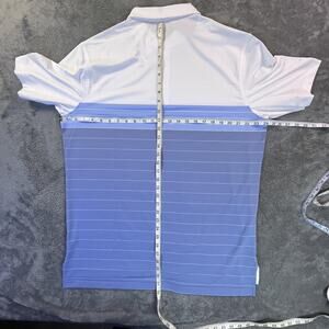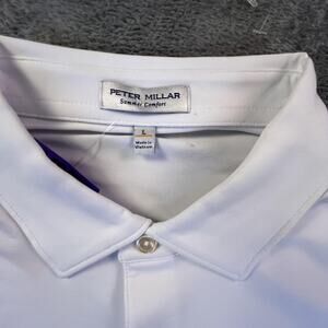 Peter Millar Polo Shirt Mens Large White Blue Striped Summer Comfort Golf Tag