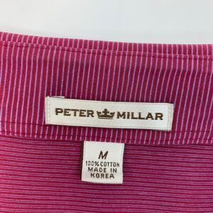 PETER MILLAR POLO SHIRT MENS M MEDIUM CERISE PINSTRIPE SHORT SLEEVE GOLF