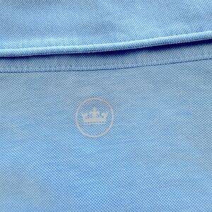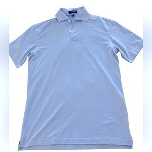 Keywords: Peter Millar polo, menโs golf shirt, Pima cotton polo, light blue Peter Millar, size small polo shirt, stretch performance polo