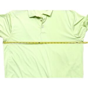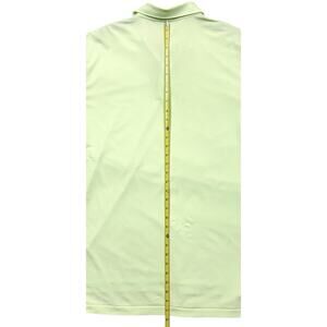 This is a pre-owned Peter Millar branded men’s polo shirt labeled size XL. It is part of the “Summer Comfort” line and is a light but bright green color with tiny stripes. The fabric is a polyester blend.