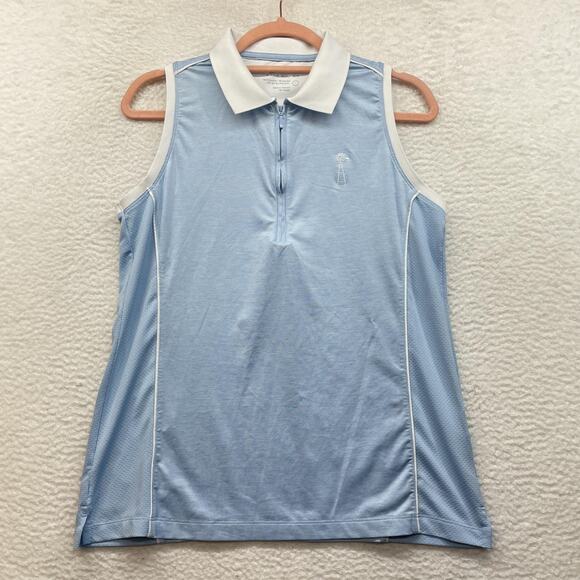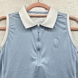 Peter Millar Polo Shirt Womens Small Blue White Sleeveless Golf UPF 50 Half Zip