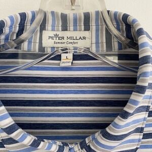 Peter Millar Polo Stripe Summer Comfort Blue Striped Shirt Size L