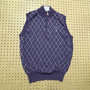 Peter Millar Pure Merino Wool 1/4 Zip Pullover Sweater Vest Argyle Navy M Men