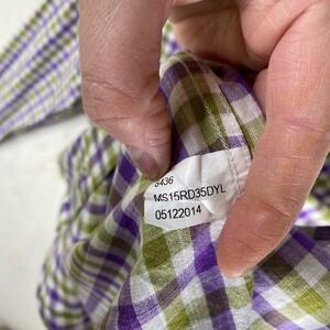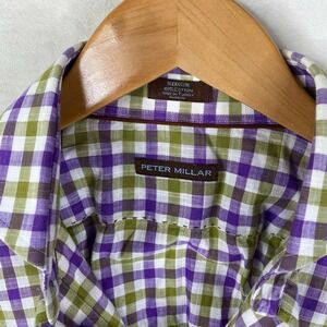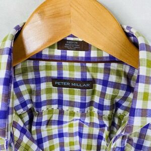 Peter Millar Purple & Green Check Print Long Sleeve Dress Shirt Mens Size Medium