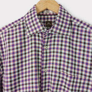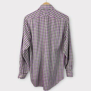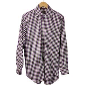 Peter Millar SZ M 100% Soft Cotton Plaid Button Down Shirt Purple Brown Orange