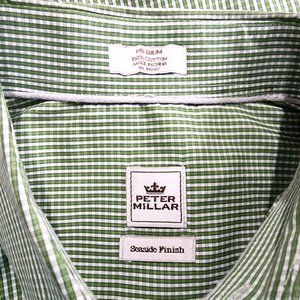 Peter Millar Seaside Finish Button Down Shirt Long Sleeve Green Checks