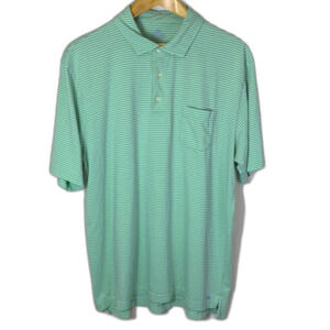 Peter Millar Seaside Wash Light Green Blue Striped Performance Polo Shirt Sz XL