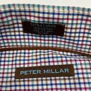 PETER MILLAR SHIRT MEN XL EXTRA LARGE GINGHAM CHECK BUTTON UP LONG SLEEVE COTTON